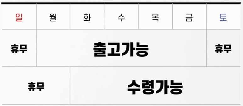 배송 기간 ㅣ 월-금 택배 출고 가능, 화-토 택배 수령 가능, 출고 다음날 수령(1일 소요),